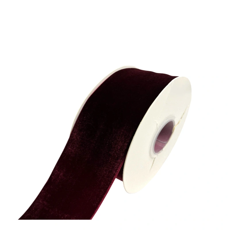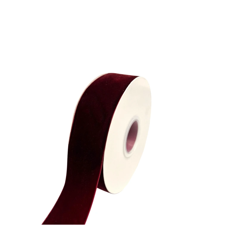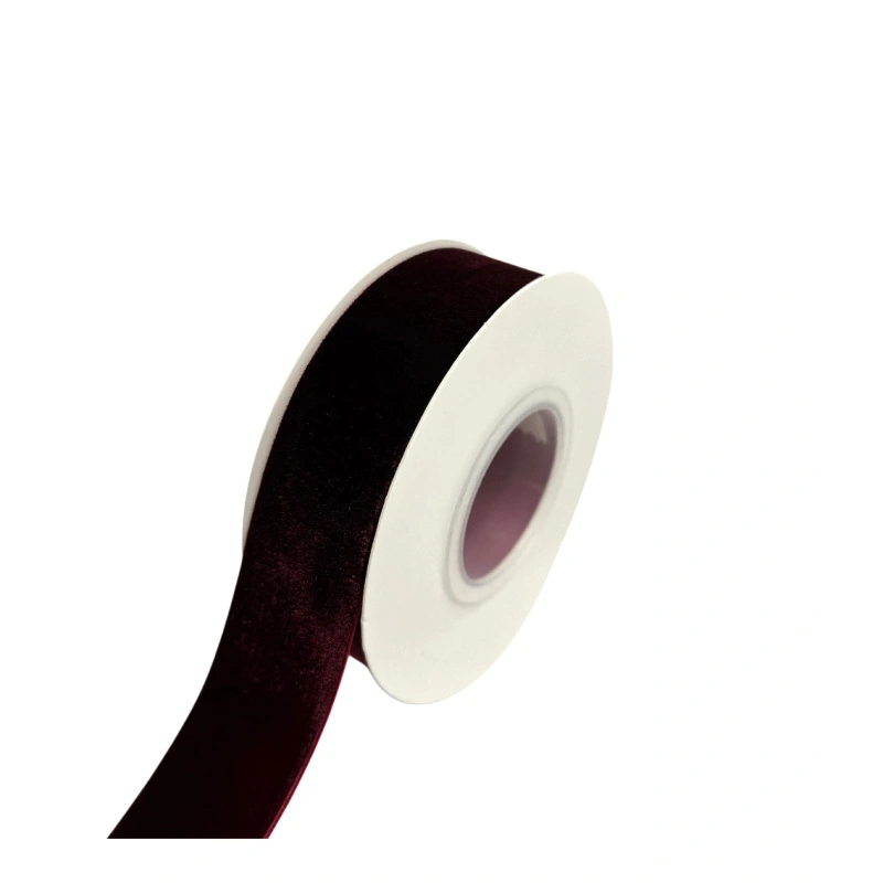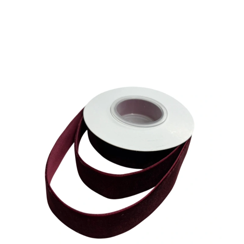 Vienpusė aksominė juostelė, tamsios vyšninės spalvos