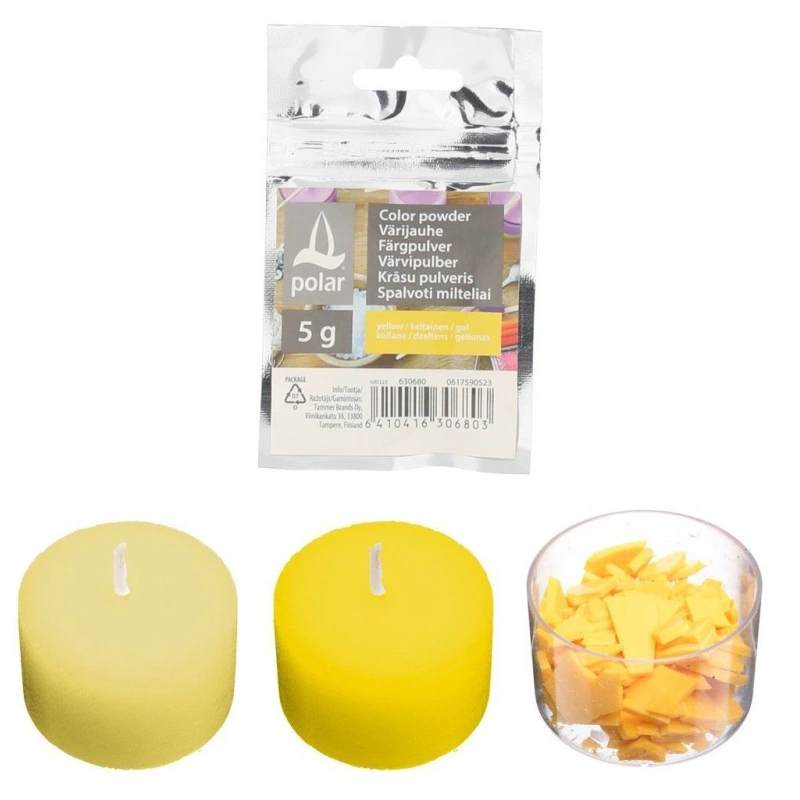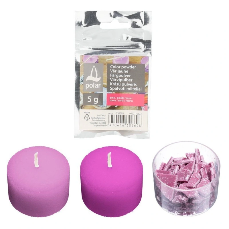 Pigmentinė pudra tinka įvairioms žvakių masėms dažyti. Žvakių dažai įmaišomi į ištirpusią žvakių masę.