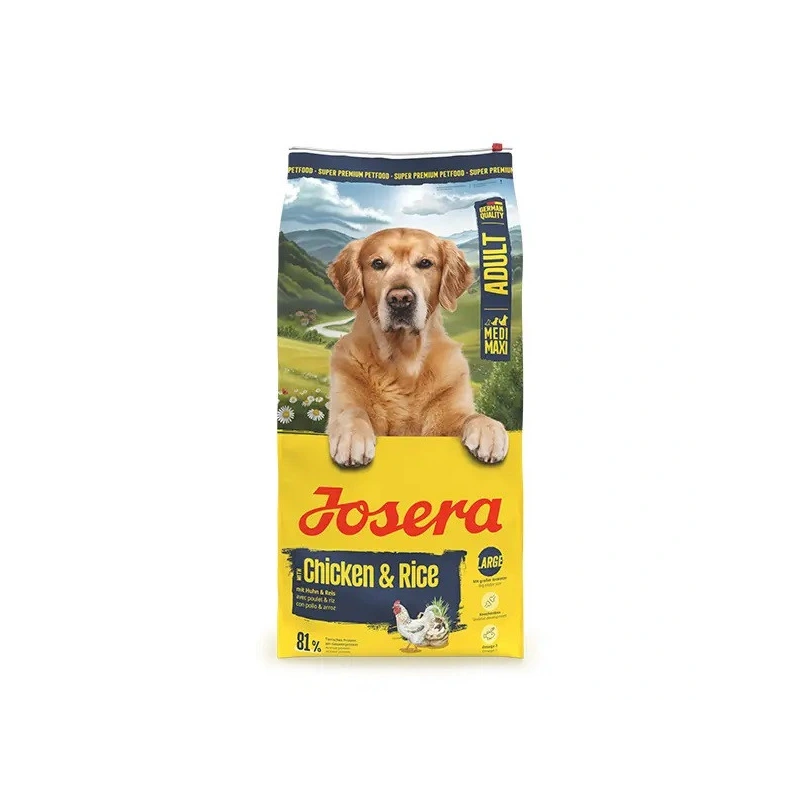 Josera barība vidēja izmēra un lielo šķirņu suņiem ar vistu un rīsiem palīdz samazināt pārēšanās risku un veicina sāta sajūtu – sastāvā daudz šķiedrvielu.